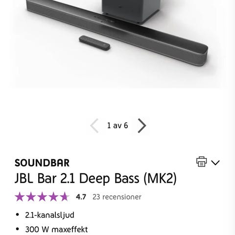 Säljer denna fina soundbar med trådlös subwoofer pga flytt.