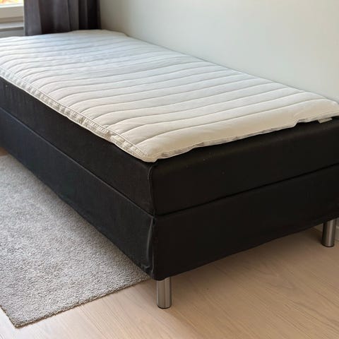 Dubbelfjädrad resårbotten 90x200 cm med 7 komfortzoner, som ger ett unikt, ergonomiskt korrekt stöd. Överst pocketfjädrar 250/m², vadderade med kallskum och polyeterskum. Nederst minibonellfjädrar 150/m². Inkl. 8 cm tjock bäddmadrass med tryckavlastande memoryskumkärna, som formar sig efter kroppen. Tvättbart stretchöverdrag med mjuk, tjock quiltning. Exkl. ben/medar.
