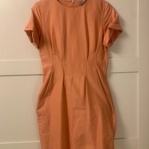 COS Festklänning i blå färg, tillverkad i chiffongmaterial. Klänningen är i storlek 34 och är avsedd för kvinnor. Den har detaljer i spetsliknande mönster och är designad för festliga tillfällen.
