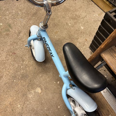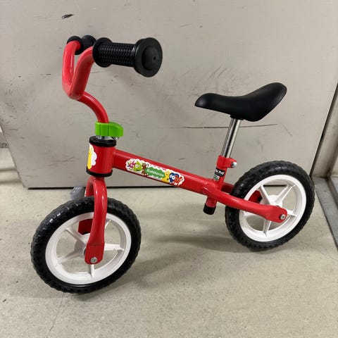 Springcykel i grön färg avsedd för barn. Cykeln är tillverkad med en ram i robust material och har svarta hjul. Designad för att hjälpa barn utveckla balans och koordination.
