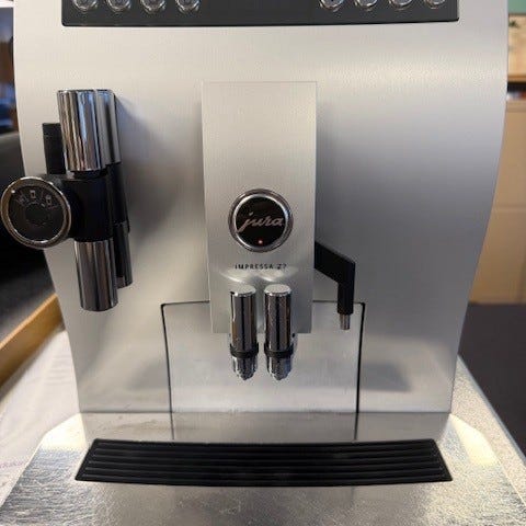 Jura Z5 Espressomaskin. I priset ingår 2 mjölk skummare 1 med kylare som man kan koppla med 230v uttag. Helautomatisk, Espresso, Kaffe, kokatvatten, Allt är super smidigt. Filter i vattenbehållaren. Ny pris 20000kr + tillbehör cirka 2500kr. Finns i Linköping.