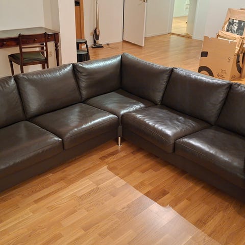 Skinnsoffa i brunt anilinskinn