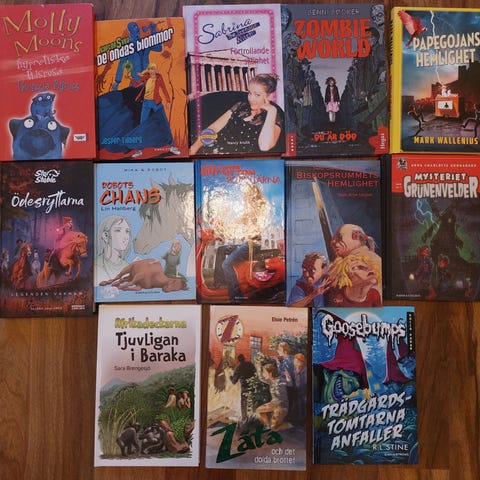 Blandade barnböcker och vuxenböcker olika författare och serier