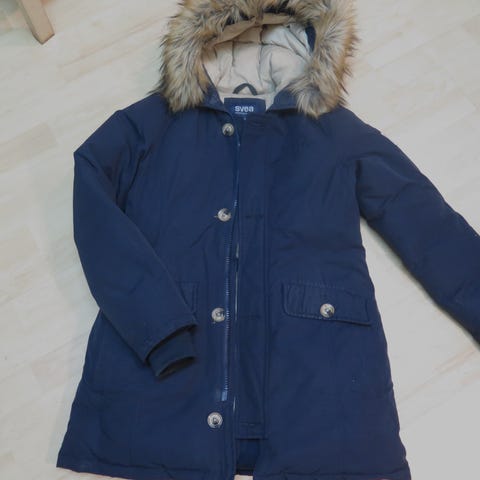 Svea dunjacka för dam i storlek XS. Jackan är svart och tillverkad av dunmaterial. Den är en övrig ytterklädesmodell med huva och fickor, lämpad för kallare väder.