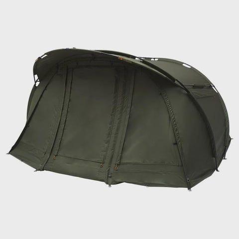 Oslagbar när det gäller stabilitet och rymlighet. Tack vare sin höjd på 170 cm kan du nästan stå upprätt inuti tältet och det finns gott om plats för en karpfiskebädd.