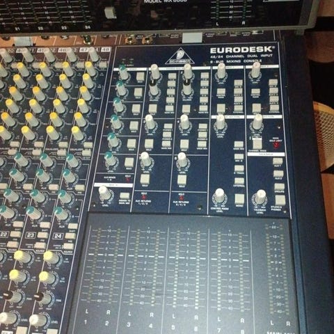 Behringer Xenyx Ljudmixer med mikrofon och stativ