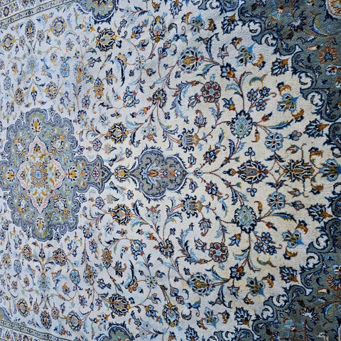 Äkta persisk handknuten signerad Keshan matta i hög kvalitet.