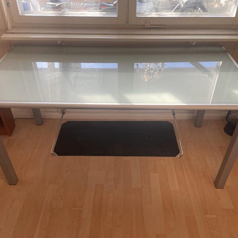 Databord / Skrivbord av mycket kraftigt glas, i mkt bra skick Finns redan isärplockat för avhämtning i kartong