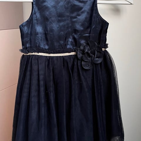 Klänning i storlek 128 och två strumpbyxor i storlek 110/116.