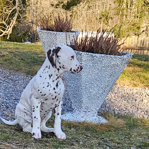 Florence. Mörkbrun tik med vit teckning. Blir prickickar i de vita partierna. Troligen tingad.