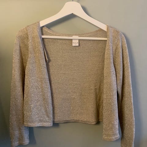 En snygg bolero i vit och svart, med långt hår som det syns på bilderna.