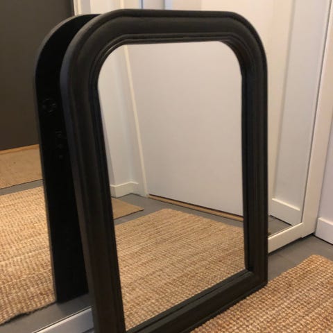Ispegel med fyrkantig form och träram. Spegeln har en enkel design och är lämplig för olika rum i hemmet, såsom sovrum eller hall. Storleken är anpassad för att kunna placeras på golvet eller monteras på vägg.