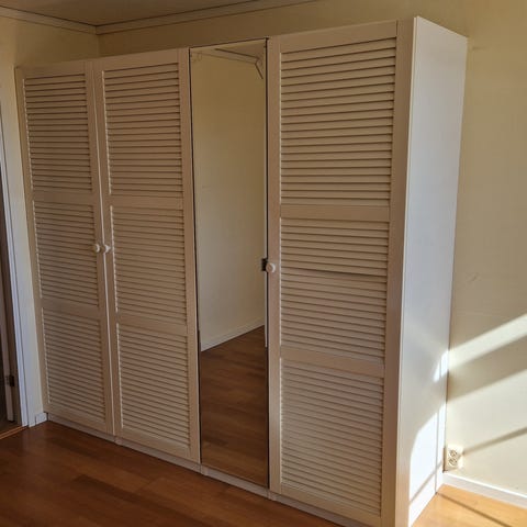 Gratis! 2 st garderober, vita dörrar finns till men är just nu nedmonterade. Mått 60 bred, 58 djup och 215cm höga. Först till kvarn.