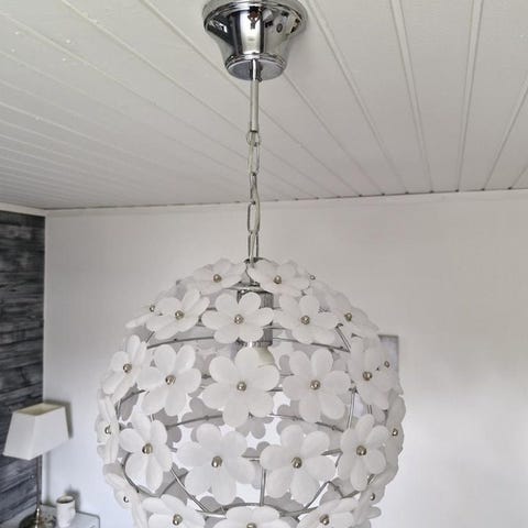 Säljer en fin taklampa med vitt drapperat tyg. Ger en varm och ombonad känsla till ditt hem.