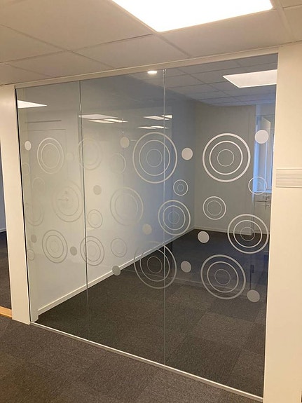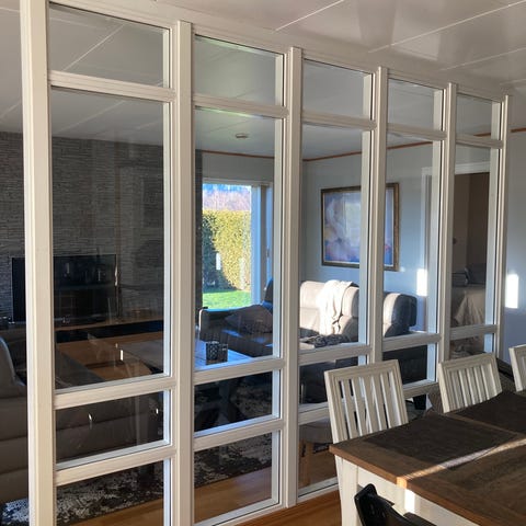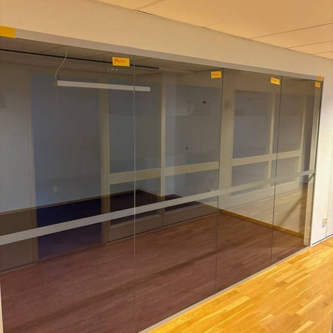 *Efter demontage upptäckte vi färgskillnader på glasens kanter (se sista bild). Glasen har tidigare suttit i samma utrymmen, alltså bredvid varandra dock inte till samma kontor.