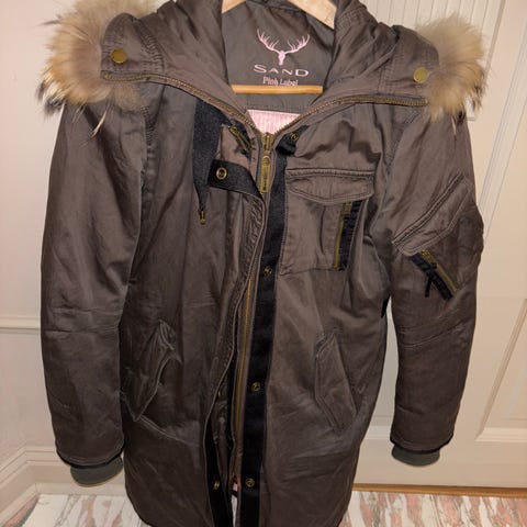 Fin dunjacka som kan spännas i midjan för en mer figurnära modell. Har fungerat som en perfekt vinterjacka under 2 säsonger men jag har fått en ny vilket gör att jag säljer den.