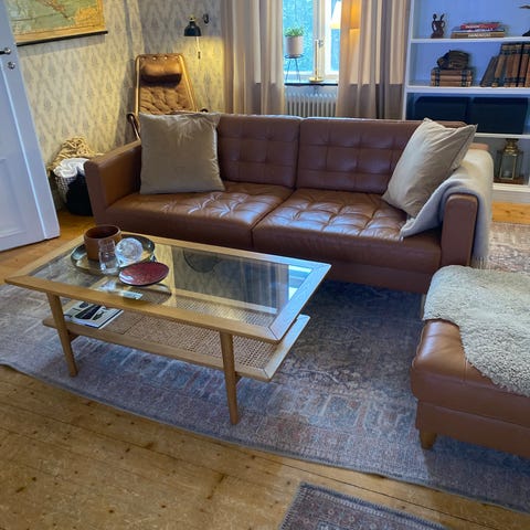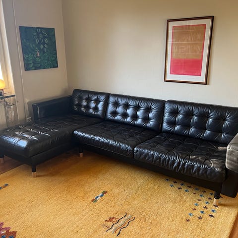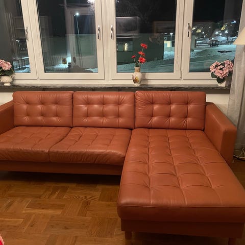 Gott använt skick. Lite märken från vår hund som krafsat i soffan, syns knappt om man inte aktivt tänker på det.