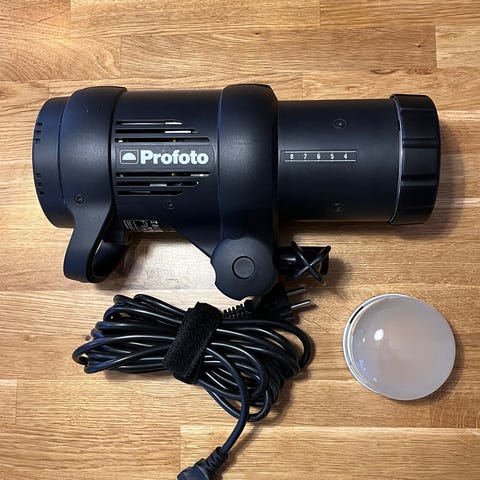 Klassiska blixtpaketet från Profoto för off-location eller studio. Bärbart i axelrem med kompakt väska. Sparsamt använt för enstaka klienter.