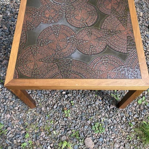 Soffbord med motiv av hällristningar.
