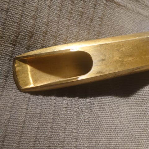 It had a tiny dint at tip so it was smoothed out by Istvan Gabor and he also fine tuned the facing curve so it is more free blowing. Great mouthpiece. Located in Lund and having the orginal ligature and box.