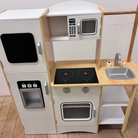 Ett fint leksakskök som min son har vuxit ifrån och nu vill han sälja den för att köpa Pokémon kort 😊 Köket kommer med tillbehören som syns på första bilden och på bilden syns även slitage så som klistermärken som börjat flagna.