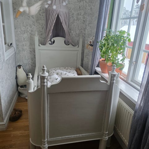 Trä Barnsäng med solmotiv