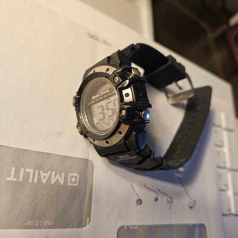 Jacob Jensen Digital Klocka med svart display och hölje i rostfritt stål. Klockan visar tid i digitalt format och har en minimalistisk design.