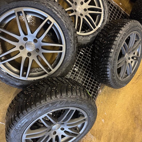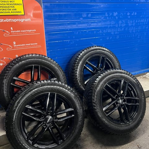 Kompletta vinterhjul med hakka 10 med nästan helt nya däck. 9mm kvar på samtliga däck