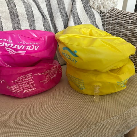 Oanvända armpuffar för bad till små barn säljes.