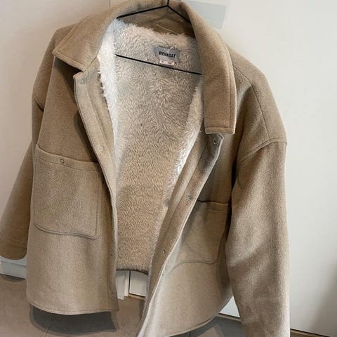 Boohoo Övriga jackor för dam i storlek 56. Jackan är beige och tillverkad i fuskpälsmaterial. Den har en mjuk och varm insida med fuskpäls och en yttre beige yta. Passar för kallare väder och ger extra värme och komfort.