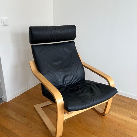 Säljer denna sköna fåtölj. Knappt använd och i nyskick. Fällbar och tillhörande forpall ingår
