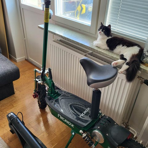 Tja! Säljer nu min Iscooter I10 på grund av att ska köpa EPA snart. Har inte använt den så mycket. Bytte slangen på bakdäcket för några dagar sen. Laddare och förpackningen kommer också. Original väskan med verktygen som fanns i också går med. Går fint och bra =)