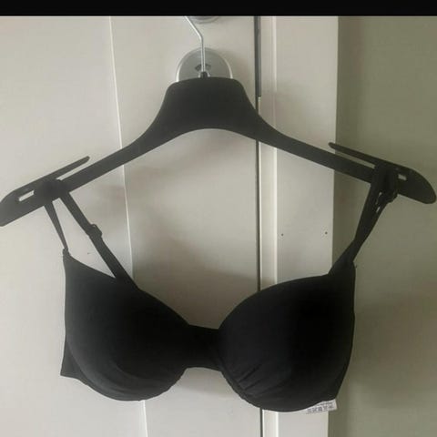 Svart och vit zebra mönstrad bikini set med sportig topp och matchande underdel.