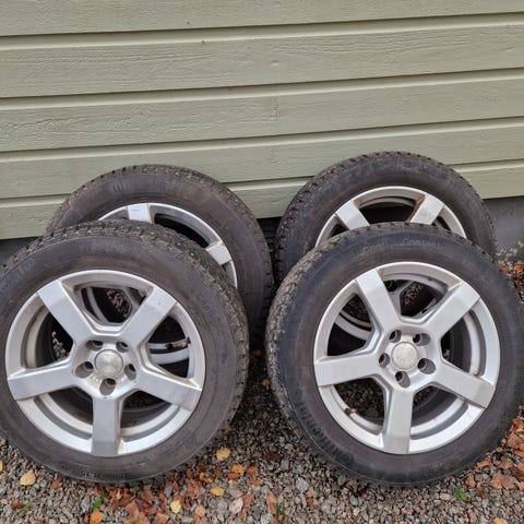 Bra dubbdäck 15" 215/65, fyra stycken på aluminium fälg.