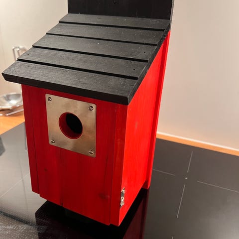 Handmålade fågelholkar i trä med olika motiv och texter på framsidan. Holkarna har rund ingångsöppning med metallring och sadeltak. Flera färgkombinationer och motiv, bland annat fåglar, nyckelpigor och blad. Passar som häckningsholkar för småfåglar eller som dekorativt inslag i trädgård, på balkong eller vid husvägg.