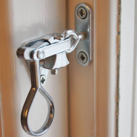 På något lås finns liten vit färgrest som kommer att vara dold vid montering. skuvas fast i fönsterkarmen ( skruv medföljer ej)