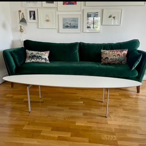 Säljer soffbord från Trippo från Karl Andersson & Söner (Design Ulla Christiansson). Mått: 190x54 cm (som bredast), höjd 40 cm. Litet nagg på sidan men i övrigt bra skick. Hämtas på plats.