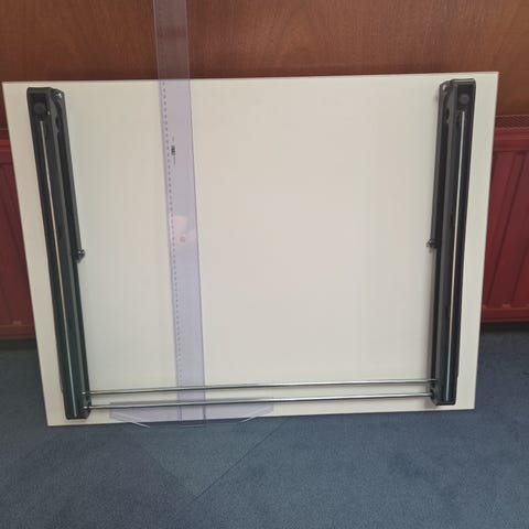 Säljer en vit metallram till höjdjusterbart datorbord (modell liknande sogesfurniture). Bordsskivan saknas – endast ramen/stativet med justerbara vred och fästen ingår. Perfekt för dig som vill montera egen bordsskiva (t.ex. MDF eller laminerad träskiva). Stabil konstruktion med hjul/gummifötter, passar både hem och kontor. Mått: ca 60D x 80W x 67H cm.