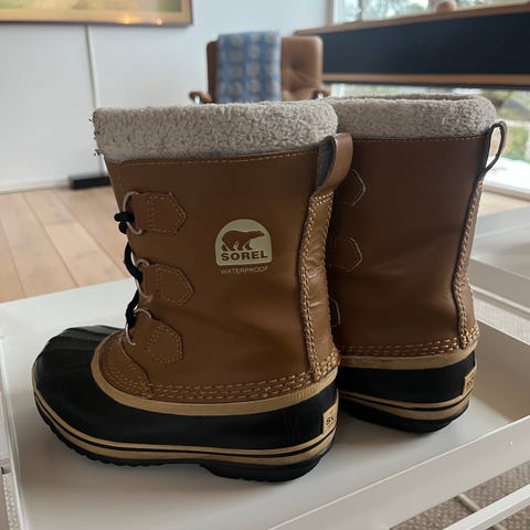 Sorel barnskor i storlek 31, svart färg, unisexmodell. Liten repa i tyget.