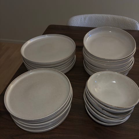 H&M Home porslinstallrikar och skålar i vitt. Setet består av olika storlekar på tallrikar och lämpliga för vardagligt bruk i köket. Materialet är porslin och produkterna har en enkel och tidlös design.