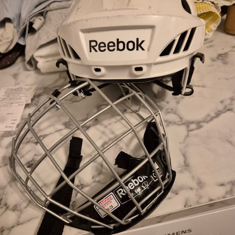 Reebok FM 5K Ishockeyhjälm i storlek M. Har avtagbartgaller. Storleken M är gissningsvis juniorstorlek.