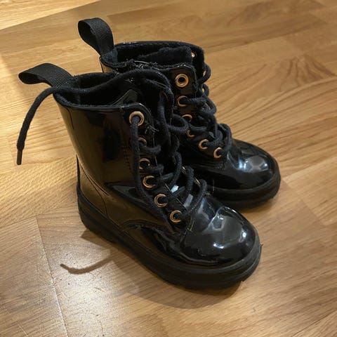 H&M Batman barnskor i storlek 30 för unisex. Skorna är svarta med gula Batman-logotyper och har en mjuk design lämpad för barn.