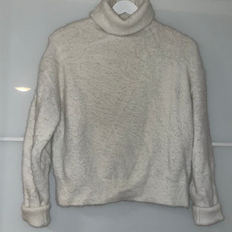 H&M Divided blå bomullsväst för dam i storlek S. Västen är stickad med ribbad struktur och har en V-ringning med kontrasterande vita kanter.