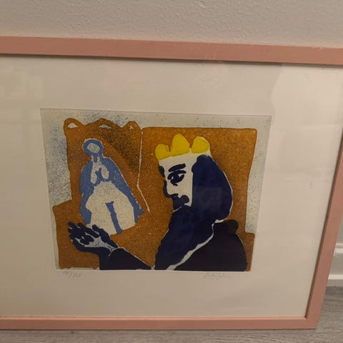 Stor och färgglad inramad tavla litografi av BERT HÅGE HÄVERÖ, signerad