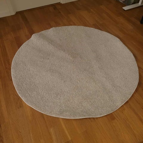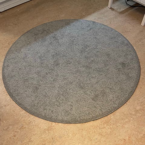 Enkel, rund, grå matta.
