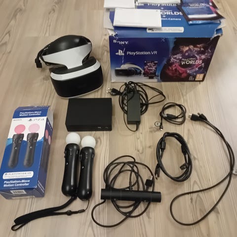 - Ett HTC Vive Pro headset med tillhörande sladdar och dosa
