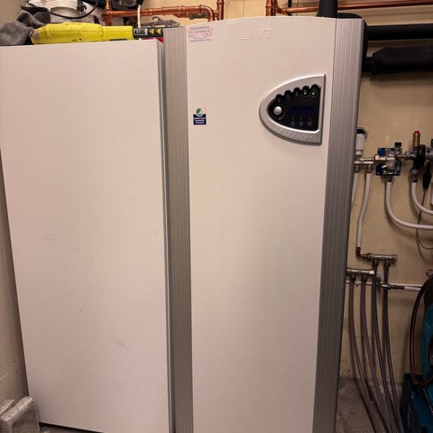 Begagnad IVT Greenline HTE9 värmepump med en effekt på 9 kW. Utrustad utbytt Wilo cirkulationspump och LK växelventil.