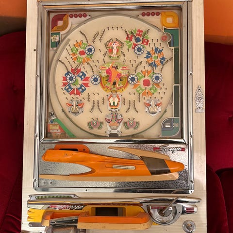 Vid insättning spelar maskinen automatiskt tills pengarna är slut, jag har inte lyckats ta bort auto läget mer än ibland. Det ska gå att ställa in någonstans. Då kan man satsa mer, hålla osv. Maskinen hänger sig också när man får upp en cherry symbol och då får man starta om den. Jag har fixat några trasiga lampor och lagat någon sladd och någon knapp som glappat. Men inser att jag inte har tiden eller orken att fixa allt. Det medföljer en extra dator som jag inte har provat. Maskinen betalar ej ut pengar utan silver eller guld mynt, jag har inga sådana tyvärr. Några gamla sedlar kan köpas med för halva valören om så önskas. Den lyser underbart läckert i mancaven och alla lampor lyser i olika mönster mycket snyggt. Jag skickar gärna en video, det är väldigt läckert! Flera man och pirra behövs vid avhämtning.