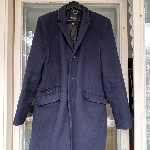 Marinblå ytterrock stl M från Scotch & Soda i Ull och polyester säljes pga fel storlek. Endast använd vid ett tillfälle. Nypris 3000kr, säljes nu för 1000kr. Inga fläckar eller skador. Från djur- och rökfritt hem.