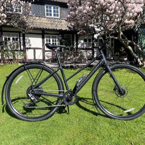 Snabb hybridcykel i bra skick. Använd knappt två år men har därefter samlat dam inomhus. 11 växlar med enbart klinga bak. Helt ny kedja och nya bromsbelägg. Enstaka repor och märken förekommer (se exempel på bild).